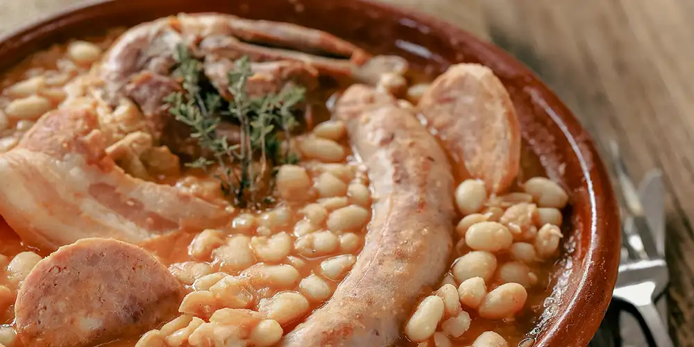 - Ajouter à nouveau les haricots, le confit de canard coupé en dés et les saucisses paysannes coupées en tranches et laisser cuire lentement le tout pendant 20 minutes. Assaisonner avec du sel et du poivre.