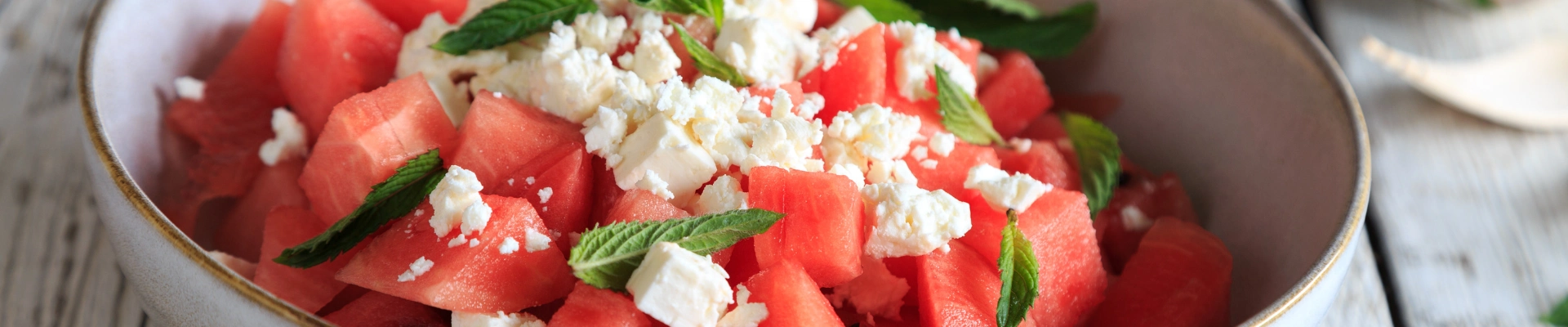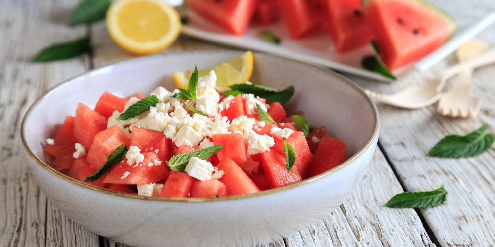 | ½ Pastèque, coupée en dés | 150 g Feta, coupée en dés ou émiettée |